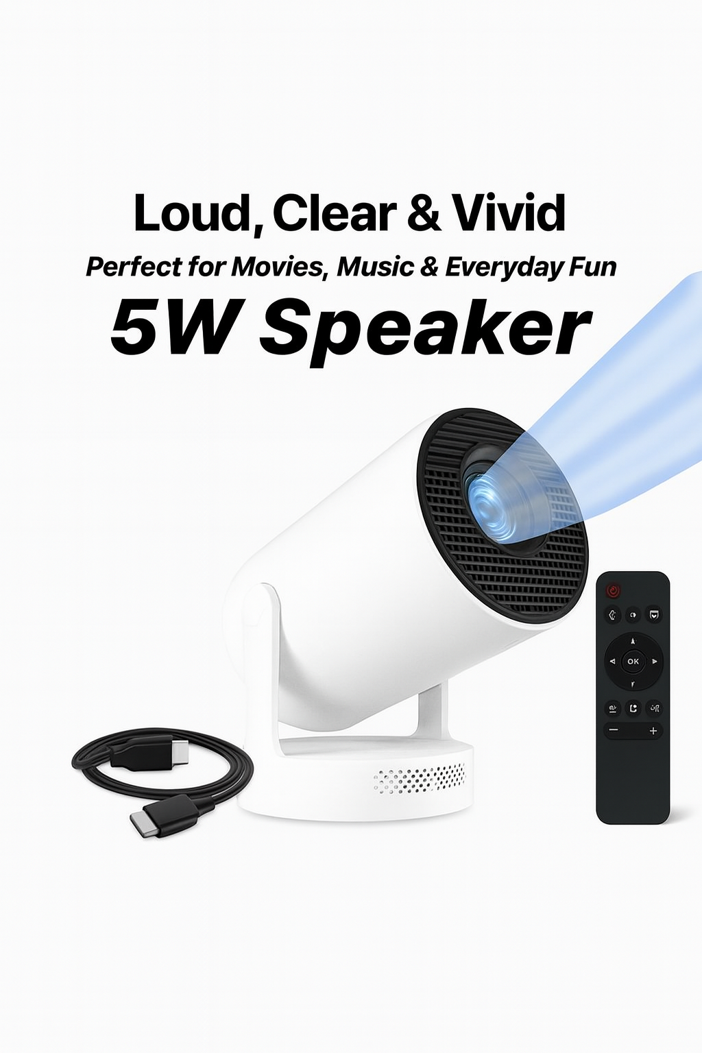 Whether you're watching movies, streaming videos, or displaying content from a phone or laptop, the HY-300 offers smooth performance with multiple connectivity options. The LED lamp ensures bright, energy-efficient projection, while the built-in speaker provides clear audio without needing extra equipment. Its lightweight design allows easy travel and storage.