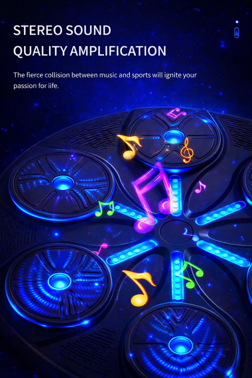 Integrated sound effects add energy to each workout, while adjustable volume controls let you customize the experience. Clearly marked buttons allow easy access to power, mode switching, and volume adjustments.