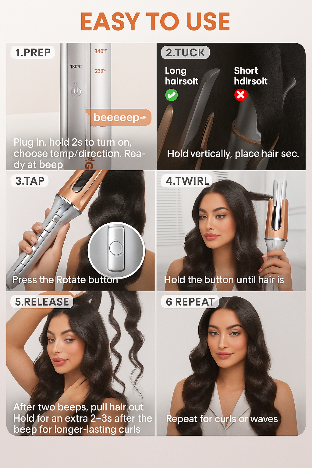 Sheglam Hair Curling Iron Professional Ceramic Curler Wand Styling Tool